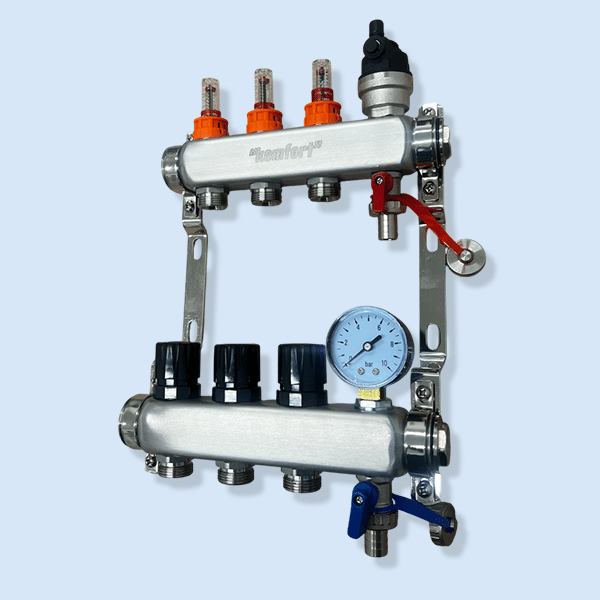 Underfloor Heating Manifold – Komfort+ 3 Port UFH C/W Pressure Gauge, AAV and Drain Valves
